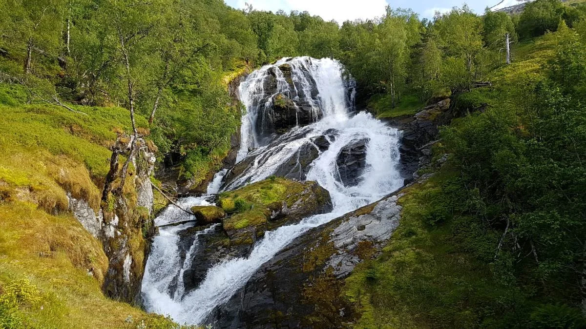 When you reach the forest road, you will see a sign pointing toward Storefossen. It is an impressive waterfall when the water flow is high.