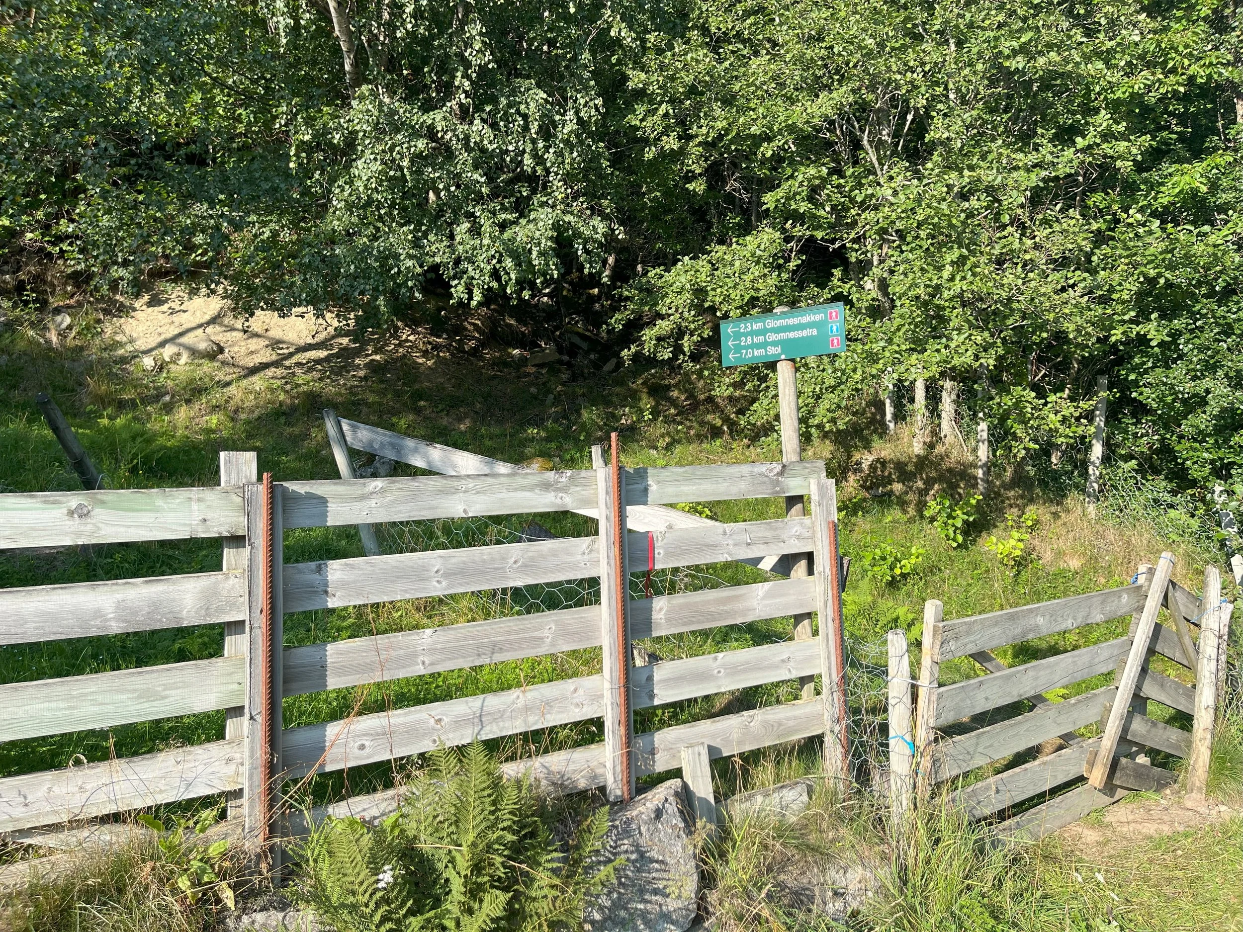 Vegen frå Kvilefloten slyngar seg lett oppover. Det er ikkje langt før du kjem til eit skilt som viser retninga mot Glomnesnakken.